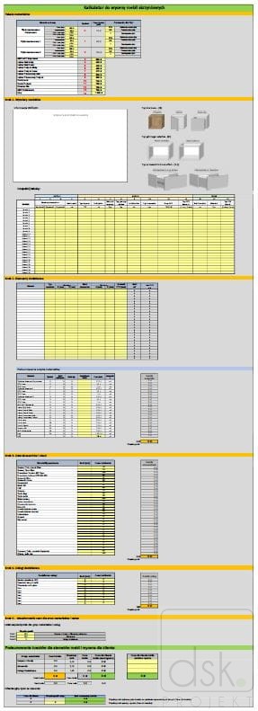 W plik znajdują się arkusze: Instrukcja użytkownika, Trzy Kalkulatory - przykładowymi wycenami z opisem oraz Kalkulator do wycen.