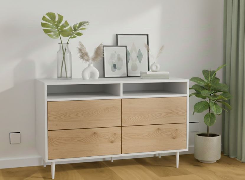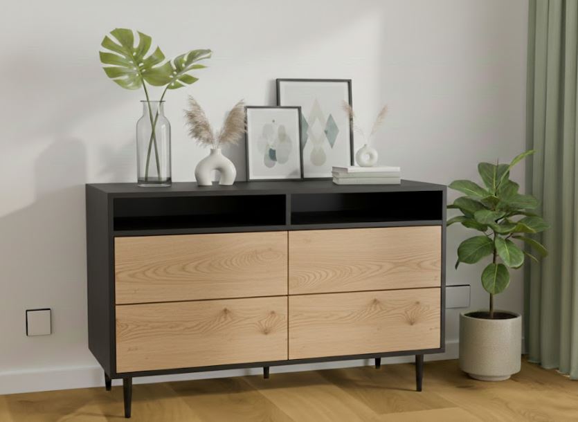 KOMODA Z 4 SZUFLADAMI I OTWARTĄ PÓŁKĄ